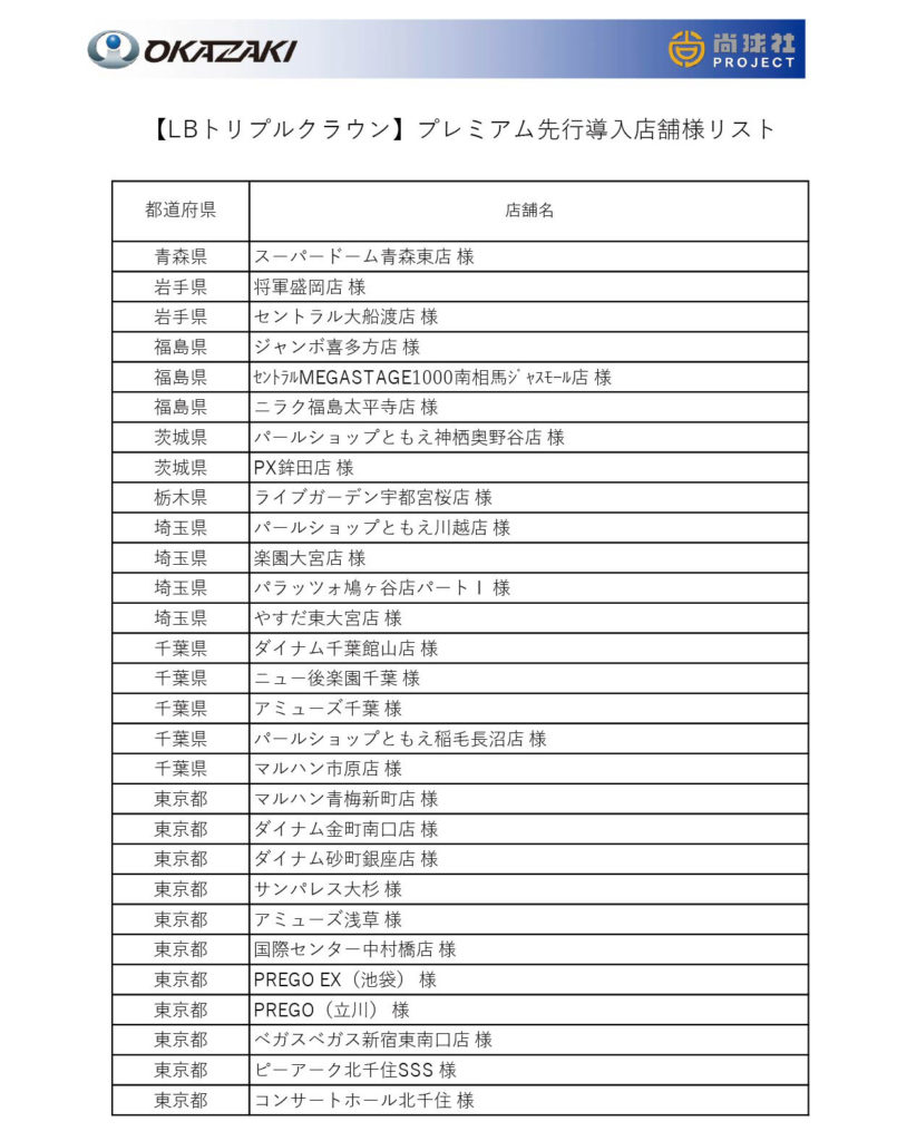 「LBトリプルクラウン」プレミアム先行導入予定ホール様一覧を公開しました。